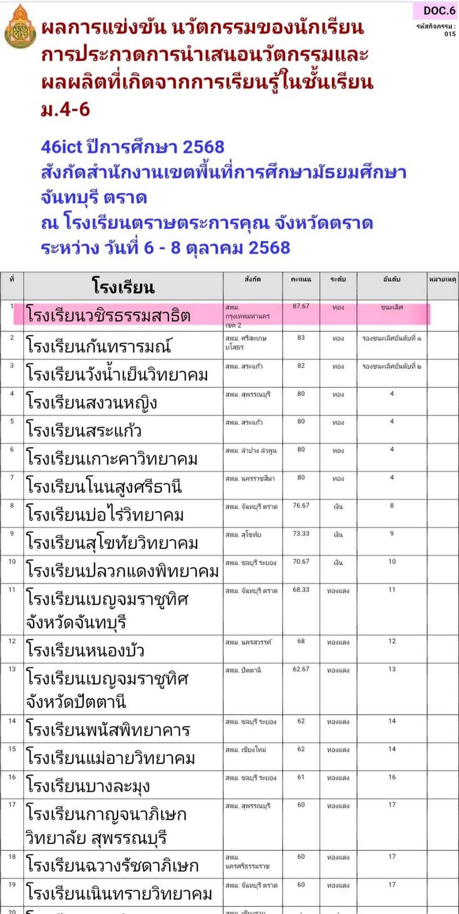 “ปังไม่หยุด! บุคลากร คอ. เป็นผู้ทรงคุณวุฒิให้ รร.วชิรธรรมสาธิต กวาดแชมป์ 46ICT คว้าชนะเลิศอันดับ 1 สองปีซ้อน”
