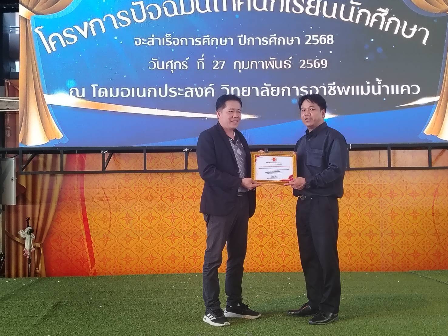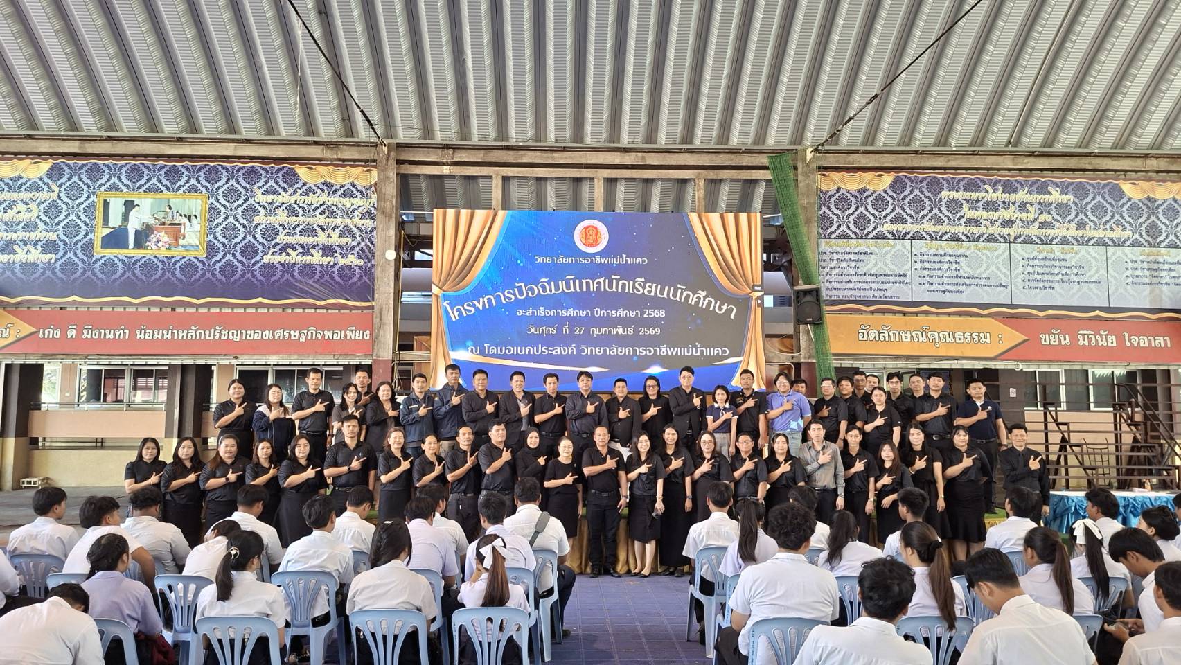 ให้แก่นักศึกษาประดับประกาศนียบัตรวิชาชีพ (ปวช.) และระดับประกาศนียบตรวิชาชีพชั้นสูง (ปวส.) ณ วิทยาลัยการอาชีพแม่น้ำแคว อำเภอเมืองกาญจนบุรี