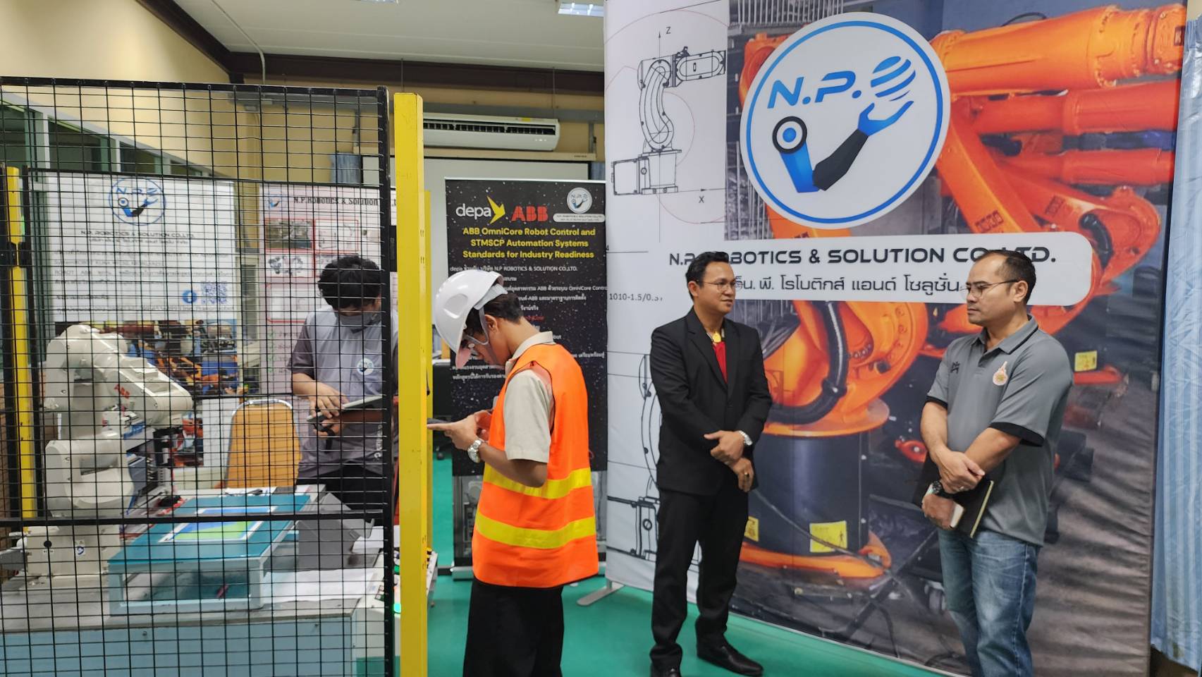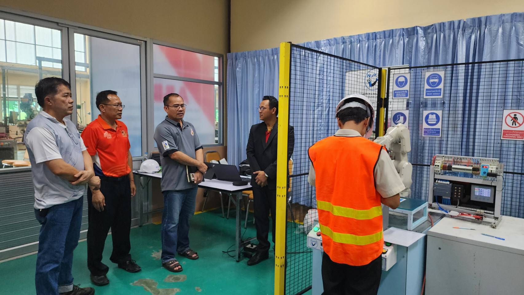 ผู้บริหารเข้าเยี่ยมชม การฝึกอบรม และการทดสอบการควบคุมหุ่นยนต์อุตสาหกรรม ABB