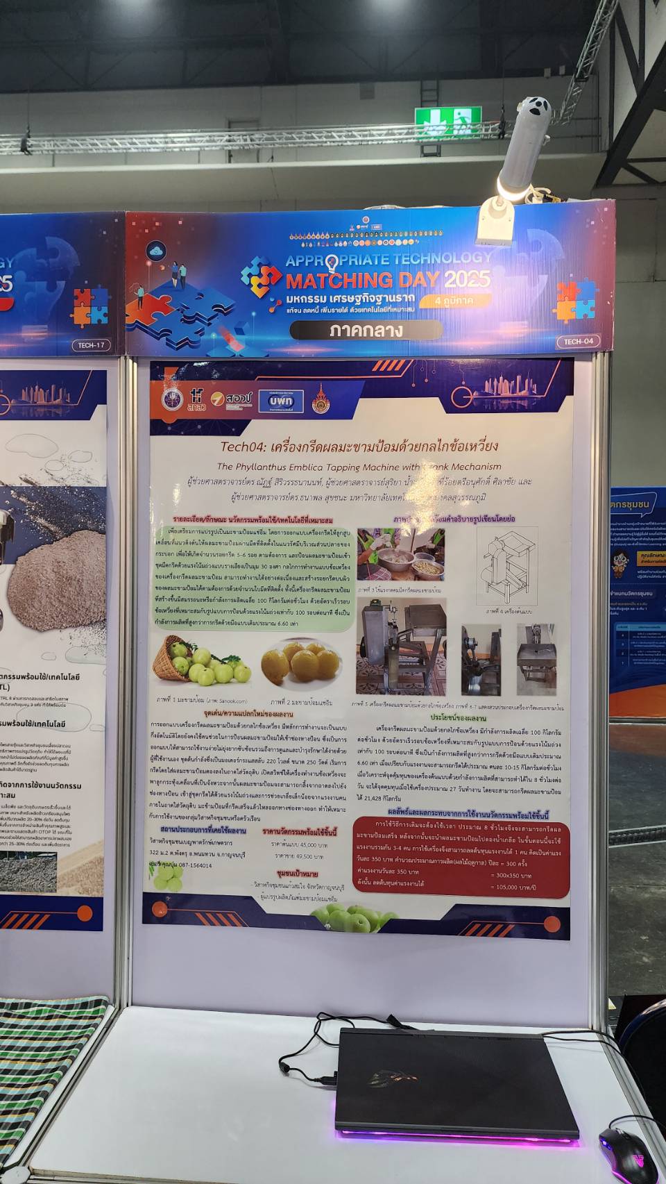 เพิ่มรายได้ ด้วยเทคโนโลยีที่เหมาะสม"Appropriate Technology Matching Day 2025 ภาคกลาง ซึ่งบุคลากร คอ.นำผลงาน จำนวน 2 ชิ้นไปจัดแสดง ดังนี้