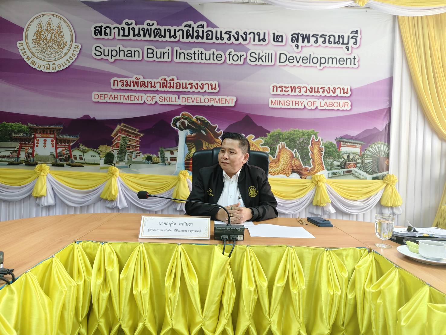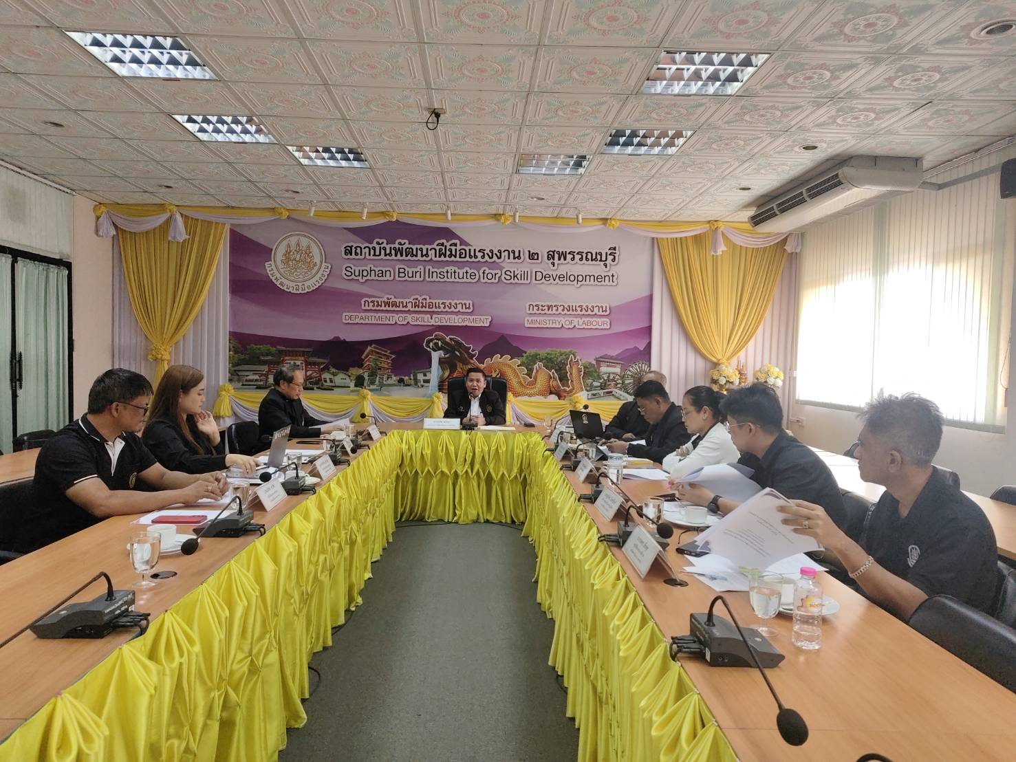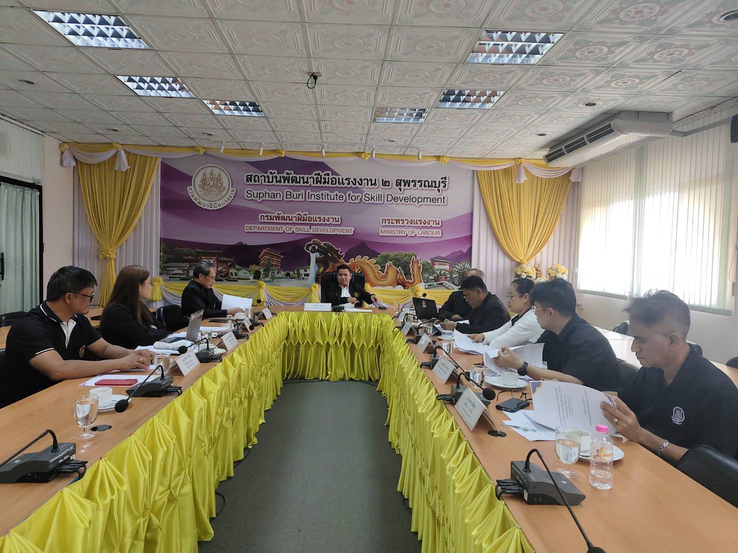 ฝีมือแรงงาน 2 สุพรรณบุรี เป็นประธานการประชุม พร้อมเจ้าหน้าที่ และคณะผู้บริหาร ณ ห้องประชุมรวงผึ้ง สถาบันพัฒนาฝีมือแรงงาน 2 สุพรรณบุรี
