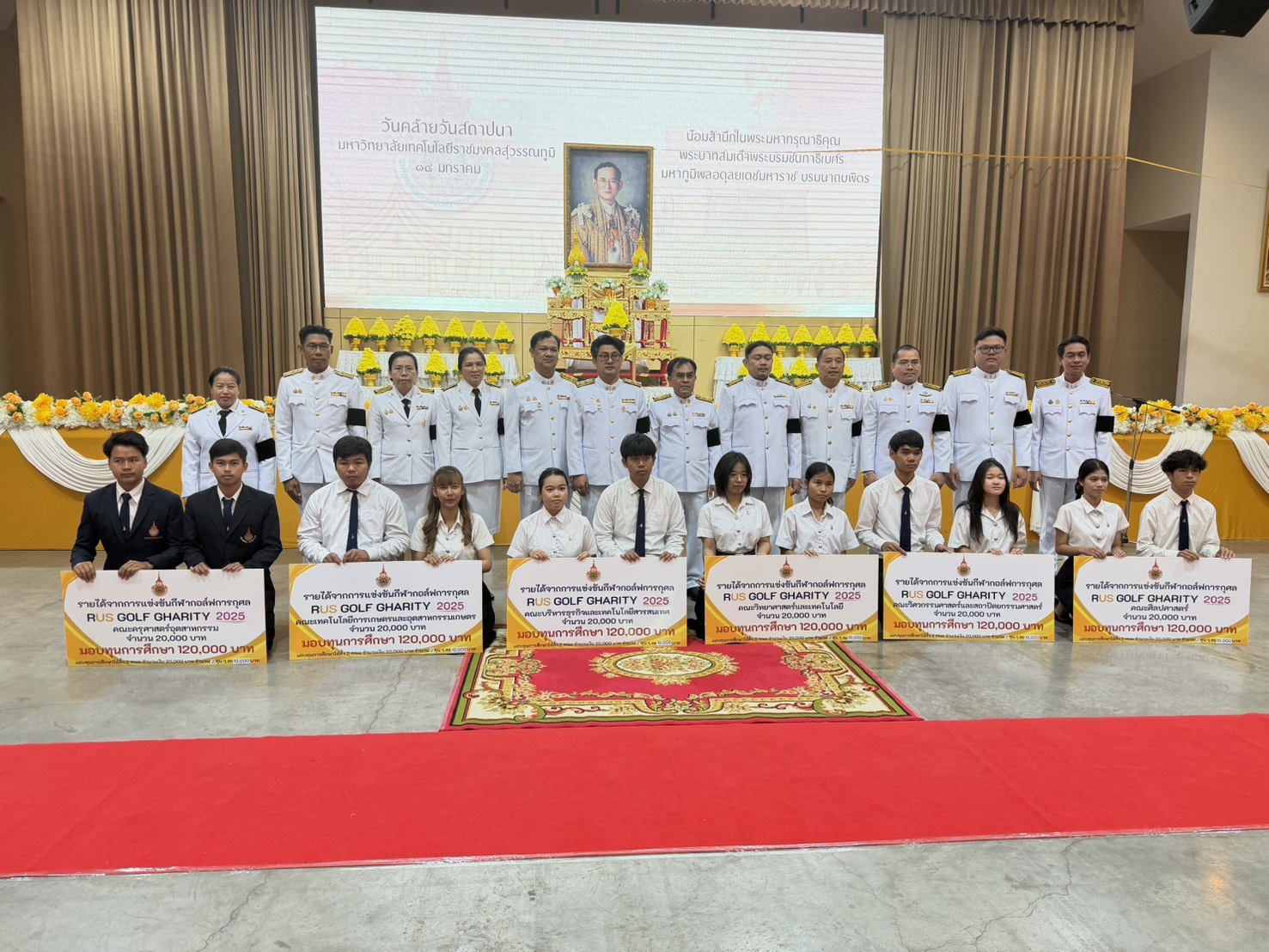 และพิธีมอบทุนการศึกษาให้กับนักศึกษาทั้ง 6 คณะฯ ณ หอประชุมพระพิรุณ - ระลึกโปรดเกล้าฯ มหาวิทยาลัยเทคโนโลยีราชมงคลสุวรรณภูมิ
