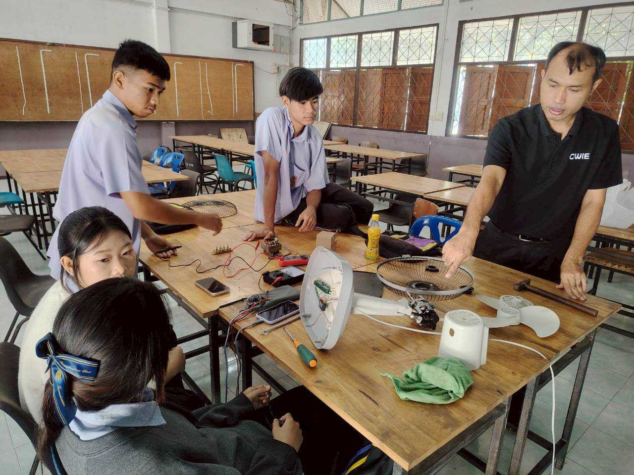 เกี่ยวกับการซ่อมบำรุงพัดลมตั้งโค๊ะเบื้องต้น เพื่อเป็นการประชาสัมพันธ์หลักสูตร สาขาวิชา และคณะฯ และเป็นทางเลือกในการศึกษาระดับอุดมศึกษาต่อไป