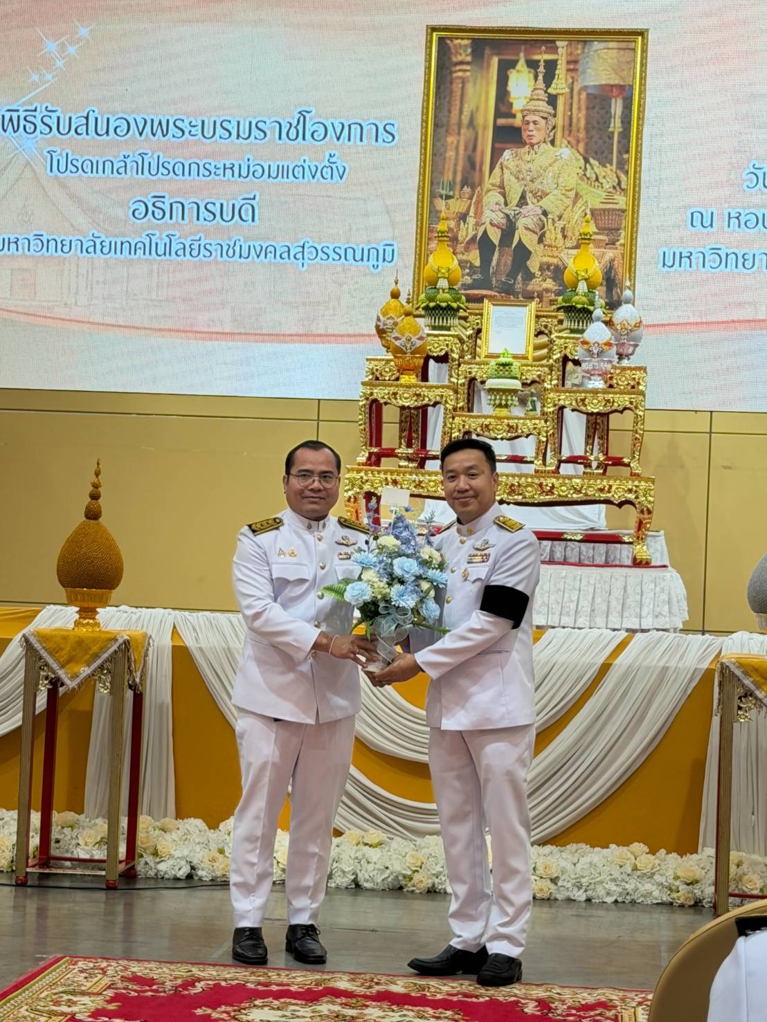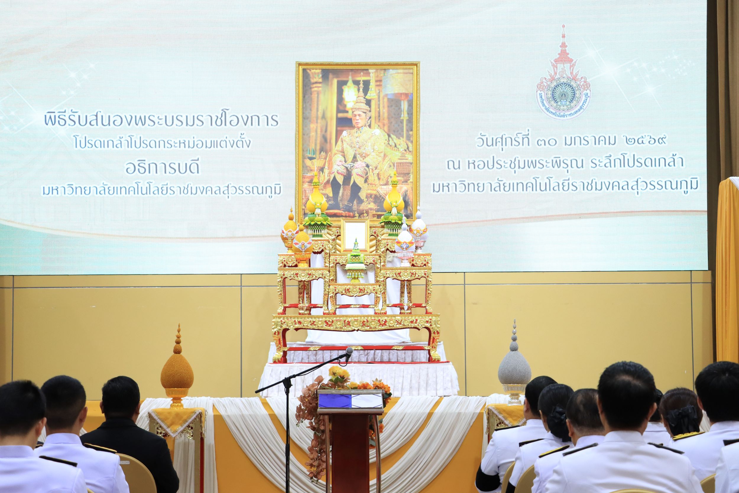 มหาวิทยาลัยเทคโนโลยีราชมงคลสุวรรณภูมิ ภายในงานประกอบไปด้วยพิธีอ่านราชโองการ การถวานสัตย์ปฏิญาณตนในการเข้ารับตำแหน่ง