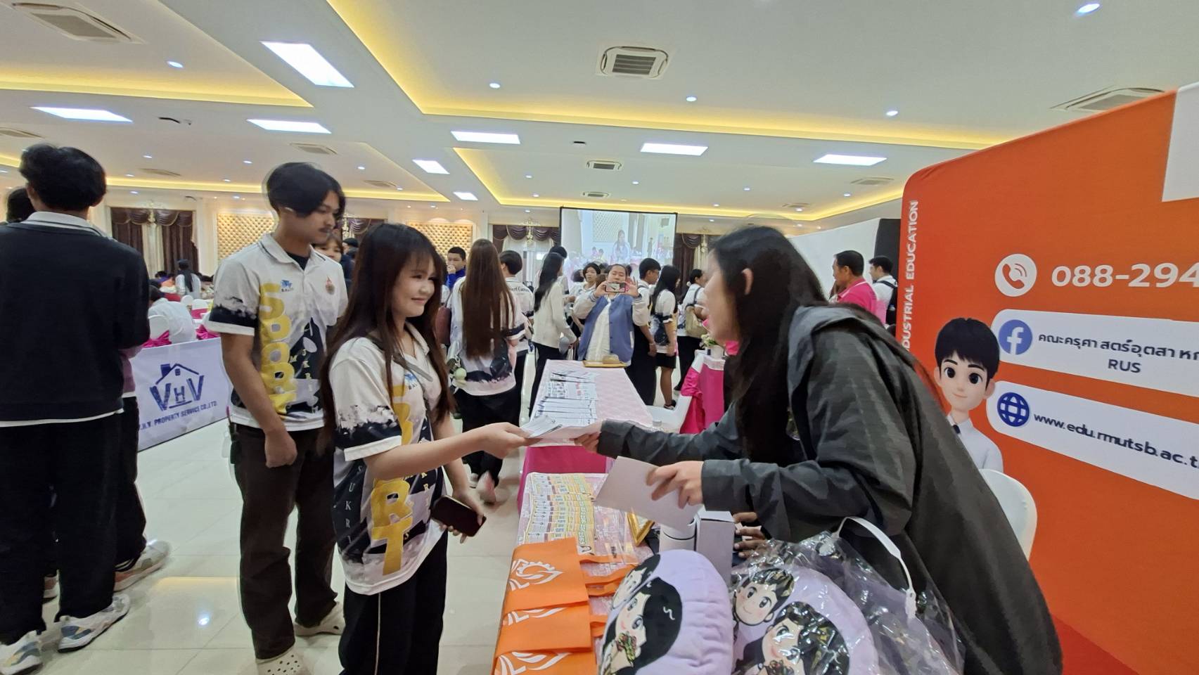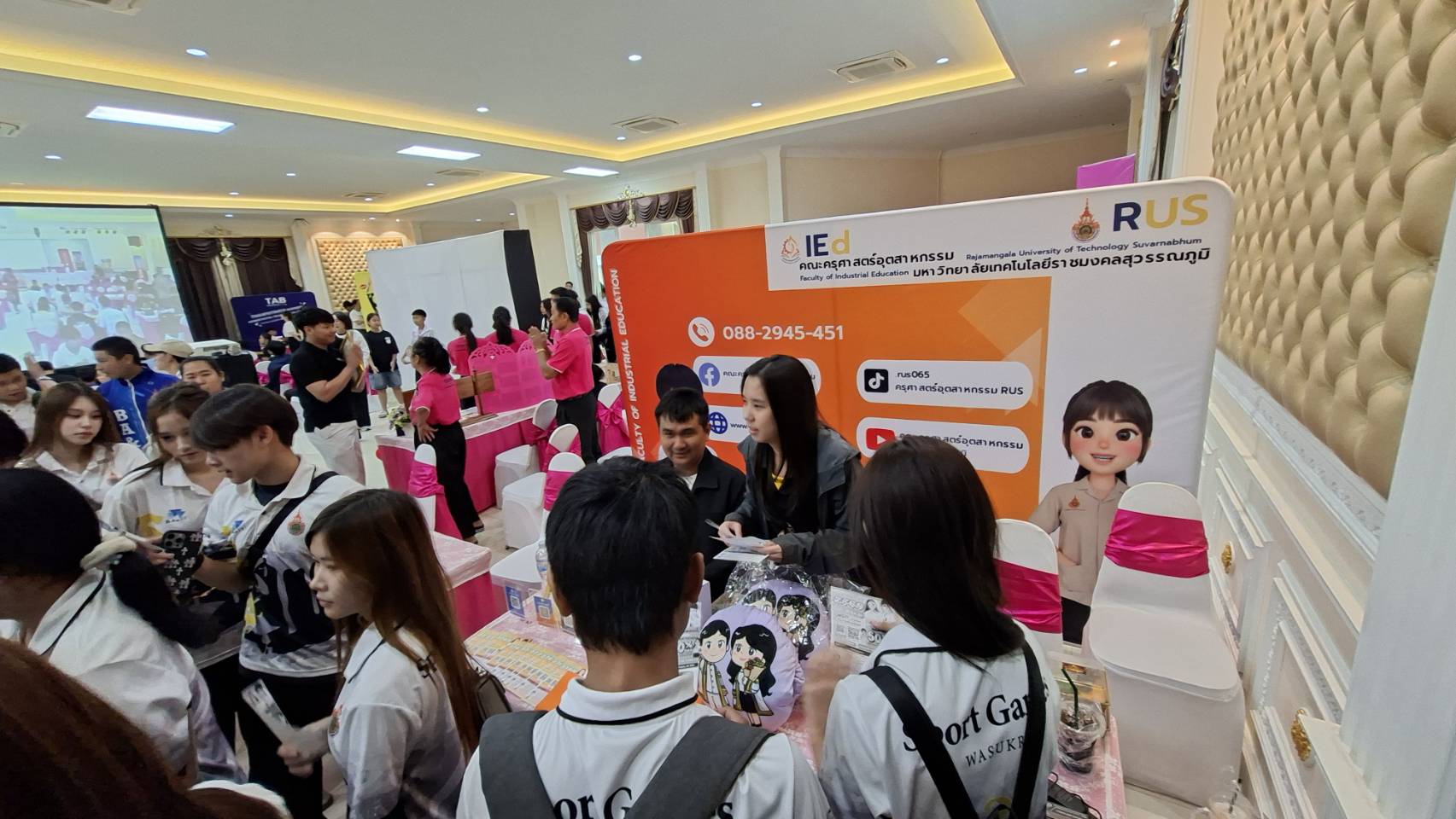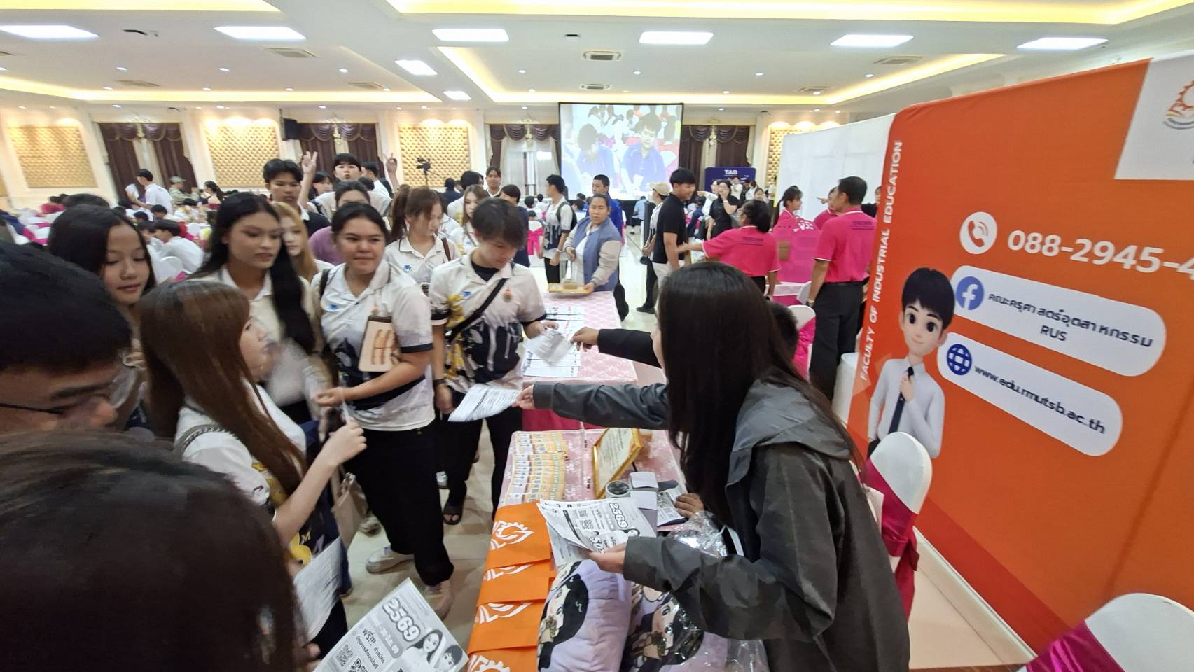 อ่ำรัศมี เจ้าหน้าที่หน่วยสวัสดิการและศิษย์เก่า และตัวแทนนักศึกษา คณะครุศาสตร์อุตสาหกรรม ได้ออกแนะแนวและประชาสัมพันธ์การศึกษาต่อ